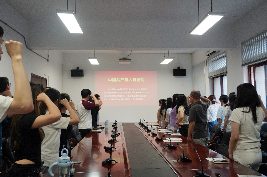会议最后,在王思聪的带领下,全体党员庄严地重温入党誓词。相信全体2025级新生党员必将以此为新起点,牢记初心使命,在未来的科研学习与个人成长中奋勇争先,为研究院的高质量发展注入蓬勃的青春力量。
